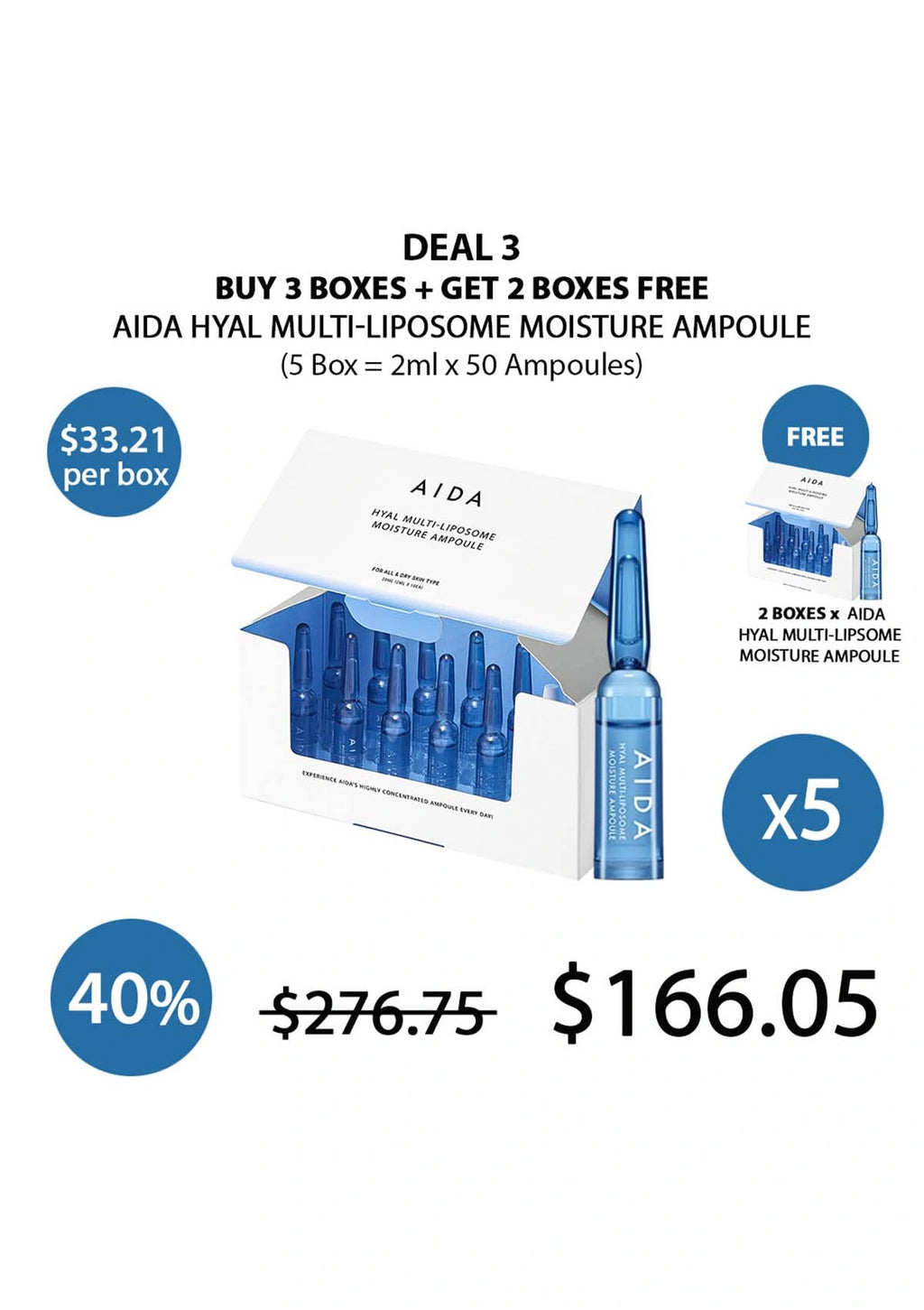 Aida Hyal Multi-Liposome Moisture Ampoule: This ampoule delivers deep, long-lasting moisture with 7-layer multi-liposome capsules, enhancing absorption and hydration.