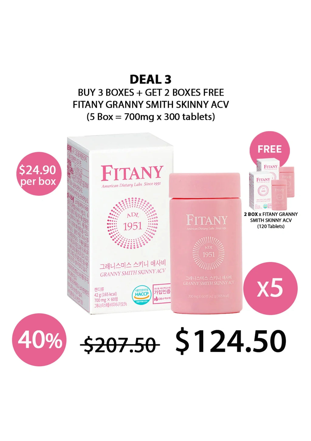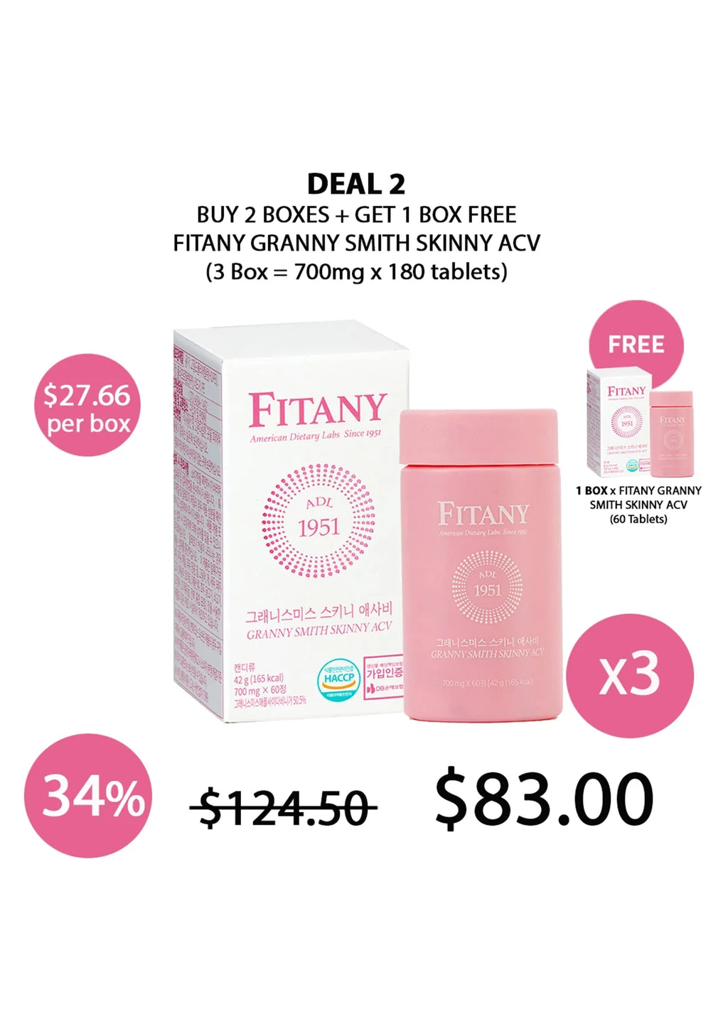 Fitany Granny Smith Skinny ACV provides a concentrated source of apple cider vinegar in tablet form, making it a convenient option for those looking to incorporate its health benefits into their daily routine. Each tablet contains 700 mg of apple cider vinegar powder, with a 20% organic acid content that supports digestive health, aids in weight management, and helps maintain balanced blood sugar levels.