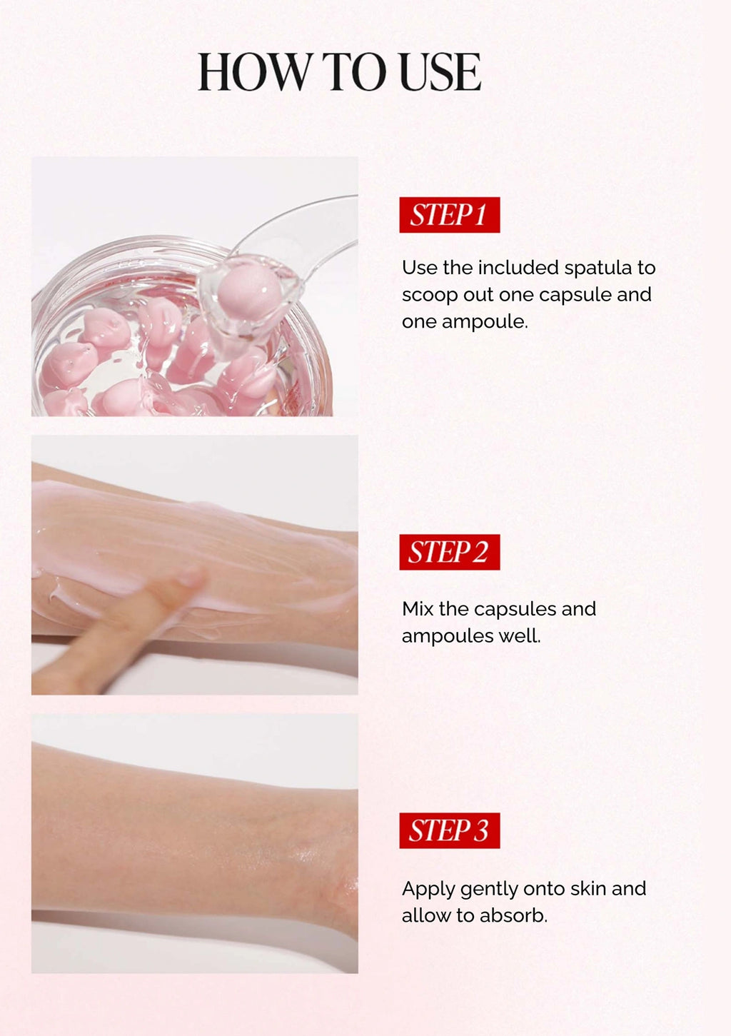 2. Mix the capsule and ampoule well and gently apply to your skin.