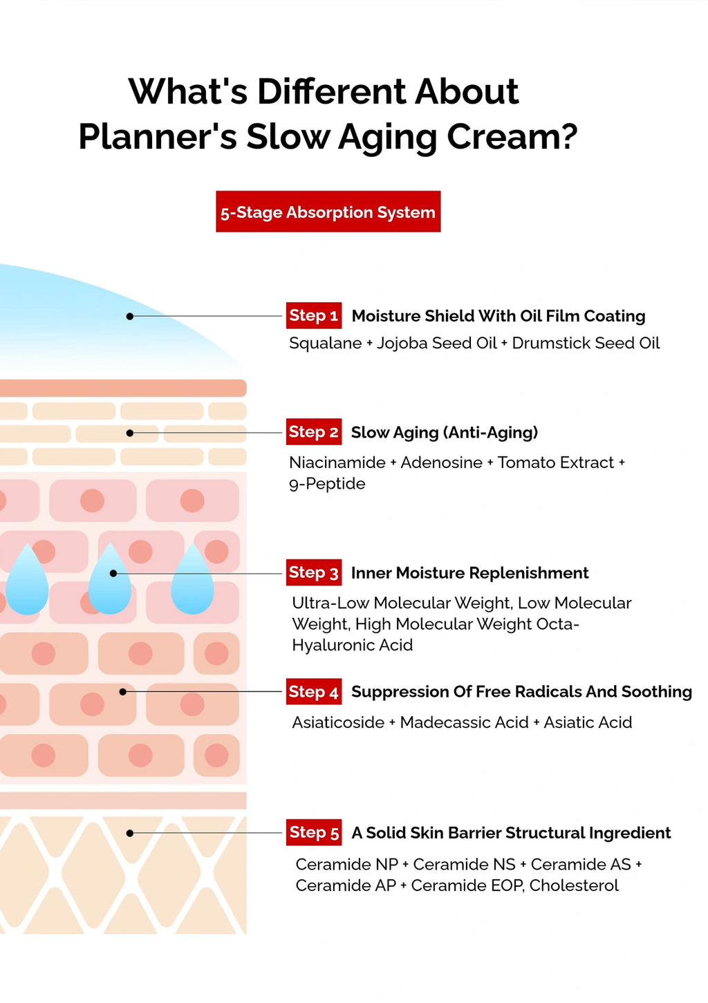 Purified Water, Glycerin, Methylpropanediol, Dipropylene Glycol, Niacinamide, Caprylic/capric Triglyceride, Shea Butter, Arginine, Carbomer, 1,2-hexanediol, Synthetic Beeswax, Stearyl Alcohol, C12-15 Alkyl Benzoate, Dimethicone, Butylene Glycol, Sorbitan Stearate, Polysorbate 60, Panthenol, Palmitic Acid, C14-22 Alcohol, Star Anise Extract, Ammonium Acryloyl Dimethyl Taurate/vp Copolymer, Henbane Extract, Limonene, Adenosine, Disodium Edta, Polyacrylate-13, Fragrance, Hydrogenated Lecithin, C12-20 Alkyl Glucoside, Gold Extract, Sodium Hyaluronate, Polyisobutene, Indian Gooseberry Leaf Extract, Centella Asiatica Leaf Extract, Polysorbate 20, Drumstick Seed Oil, Sorbitan Isostearate, Lactococcus Ferment Lysate, Bifida Ferment Lysate, Lactobacillus Ferment Lysate, Drumstick Seed Extract, Linalool, Citral, Glucose, Jojoba Seed Oil, Cetearyl Alcohol, Stearic Acid, Squalane, Asiaticoside, Madecassic Acid, Asiatic Acid, Tomato Extract (0.14 Ppm), Hydroxypropyltrimonium Hyaluronate, Polyglyceryl-10 Laurate, Ceramide Np, Kelp Extract, Flat Laver Extract, Spirulina Platensis Extract, Wakame Extract, Gelidium Cartilaginous Glandulifera Extract, Hydrolyzed Hyaluronic Acid, Sodium Acetylated Hyaluronate, Beta-glucan, Ethylhexylglycerin, Tripeptide-1, Ceramide Ns, Hyaluronic Acid, Phytosphingosine, Cholesterol, Ceramide As, Ceramide Ap, Sodium Hyaluronate Crosspolymer, Hydrolyzed Sodium Hyaluronate, Histidine, Valine, Leucine, Isoleucine, Phenylalanine, Glycine, Serine, Aspartic Acid, Ornithine, Glutamic Acid, Proline, Methionine, Taurine, Alanine, Copper Tripeptide-1, Palmitoyl Pentapeptide-4, Palmitoyl Tripeptide-1, Hexapeptide-9, Hexapeptide-11 Acetyl Tetrapeptide-2, Acetyl Tetrapeptide-5, Potassium Hyaluronate, Palmitoyl Tripeptide-5, Ceramide Eop.
