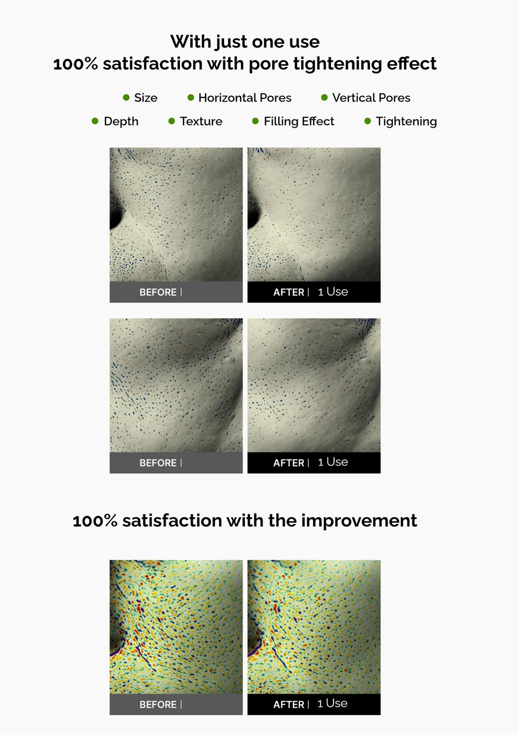 Tested and proven as non-irritating through human clinical trials, this cleanser delivers noticeable improvements in pore size, blackheads, and skin roughness. After one application, users reported 100% satisfaction with pore tightening and texture refinement. Perfect for men and women of all ages, this gentle yet powerful product turns everyday cleansing into an effective pore care ritual, promoting refreshed, smoother, and more radiant skin.