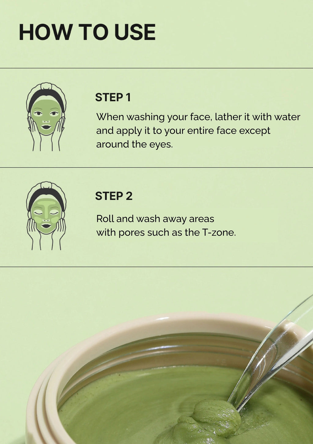 Its sticky and viscous formulation adheres to waste in the pores, providing thorough cleansing while simultaneously smoothing skin texture. Fine green tea powder and cellulose work as natural exfoliants, effectively removing dead skin cells without causing irritation, making it suitable for daily use, even on delicate skin. The mildly acidic pH of 6.2 ensures the cleanser supports the skin’s natural barrier for healthy and balanced skin.