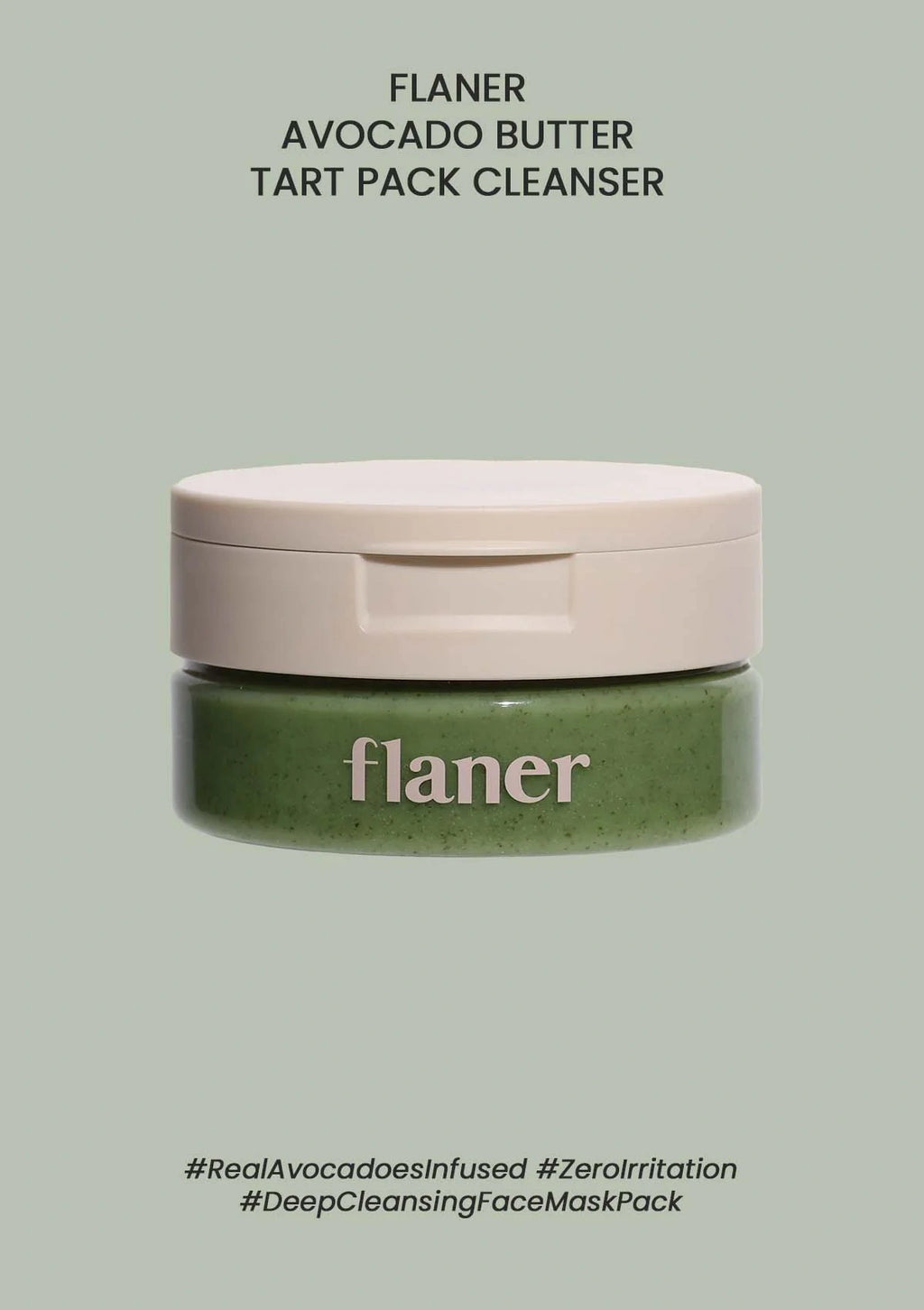 Flaner Avocado Butter Tart Pack Cleanser is a unique exfoliating cleanser designed to tackle stubborn pore concerns while remaining gentle even on sensitive skin. Formulated with natural ingredients like avocado fruit extract, avocado leaf extract, lime peel extract, and mung bean extract, this cleanser deeply absorbs accumulated sebum and impurities, leaving pores noticeably tightened after just one use.