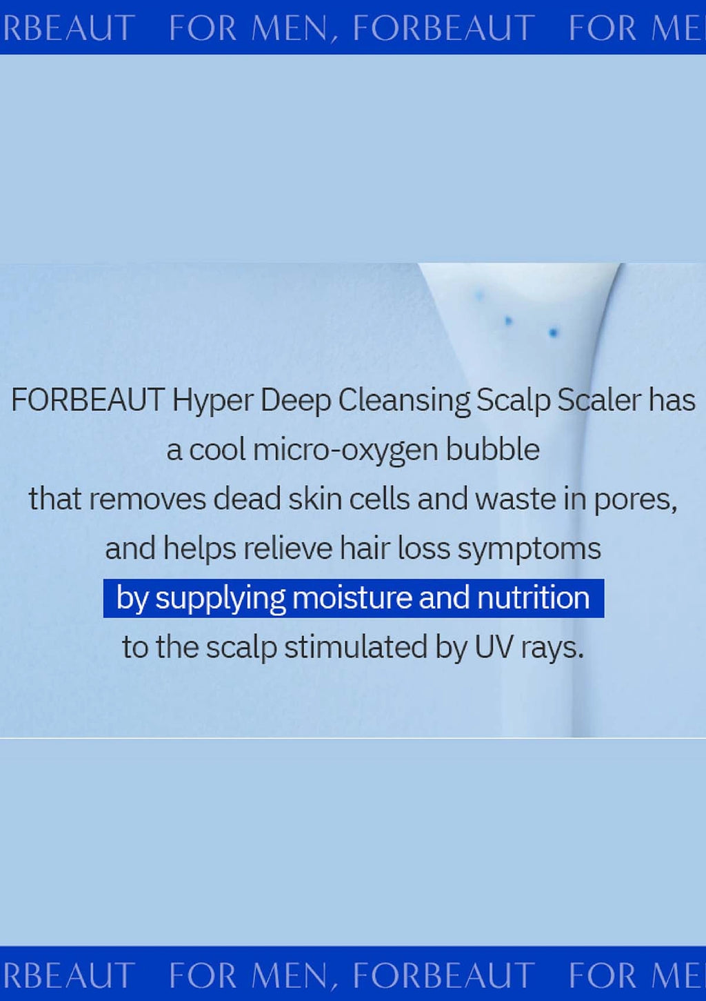 Forbeaut Hyper Deep Cleansing Scalp Scaler is an advanced at-home scalp treatment designed to melt away dead skin cells, sebum buildup, and pore-clogging waste with its signature cooling micro-oxygen bubbles. Ideal for both oily and dry scalps, this gentle yet powerful formula cleanses without irritation, calms UV-stimulated skin, and refreshes the scalp with every use.