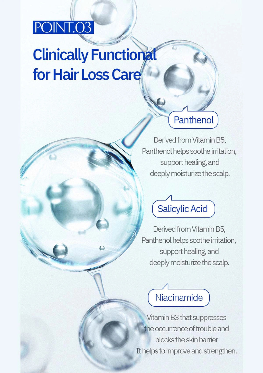 Infused with seaweed extract, Panthenol, Salicylic Acid, and Niacinamide, it delivers deep hydration while supporting hair loss care and maintaining the oil-moisture balance. Clinically formulated with TECA Biome™, HP-DCC Complex, and Anti-Sebum P, this scaler strengthens scalp immunity, soothes inflammation, and helps relieve dandruff and scalp odor.