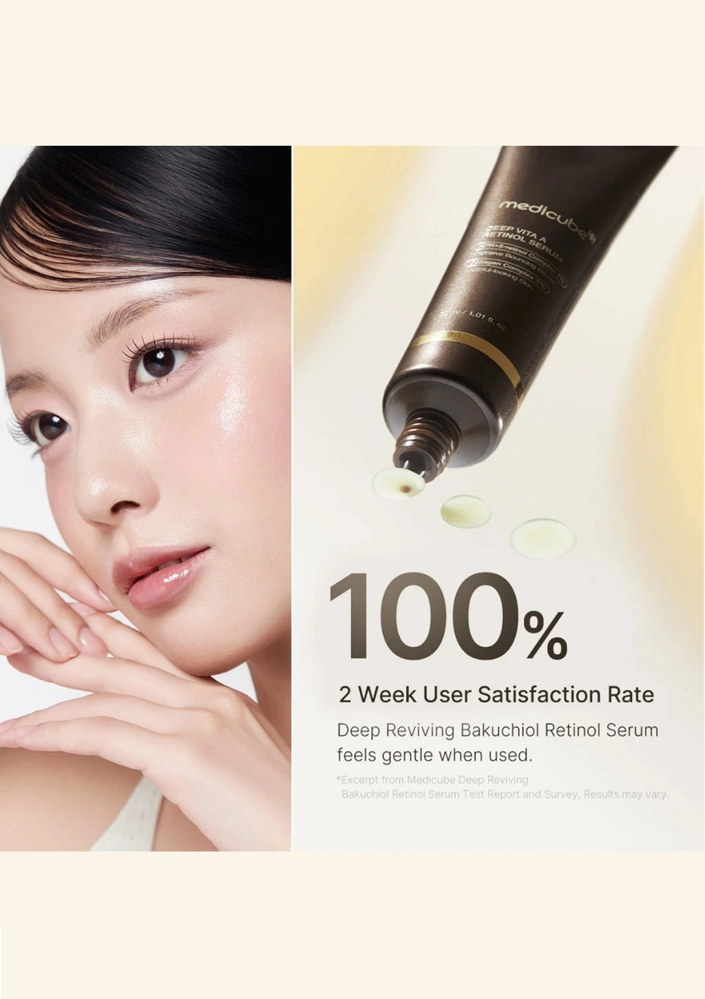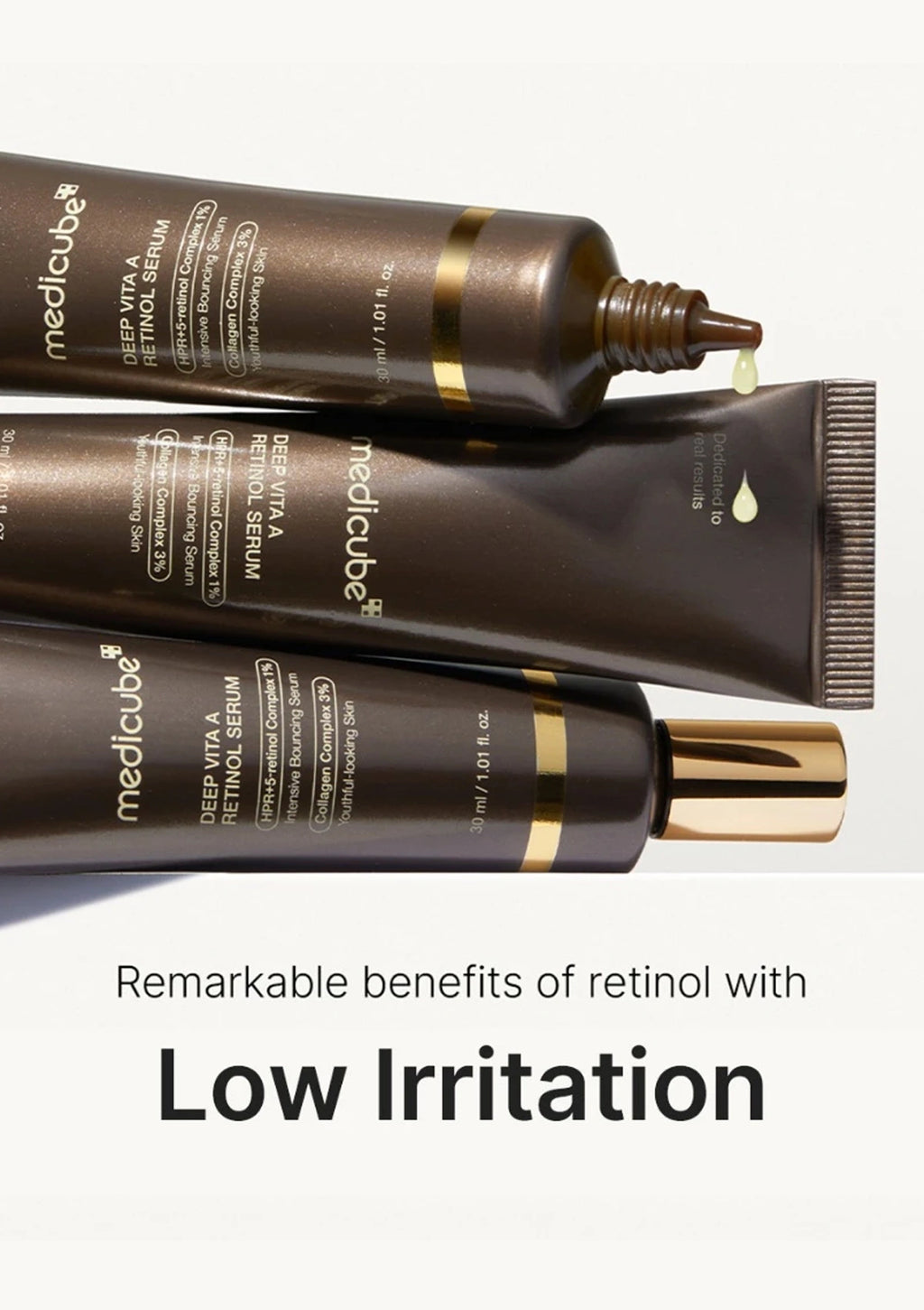 Medicube Deep Vita A Retinol Serum is a potent, multi-layered treatment that targets the visible signs of aging, improves skin texture and boosts skin firmness. This advanced serum combines seven layers of stabilized retinol and bakuchiol that work in synergy to stimulate collagen production, reduce fine lines, and promote a smoother, more youthful complexion.