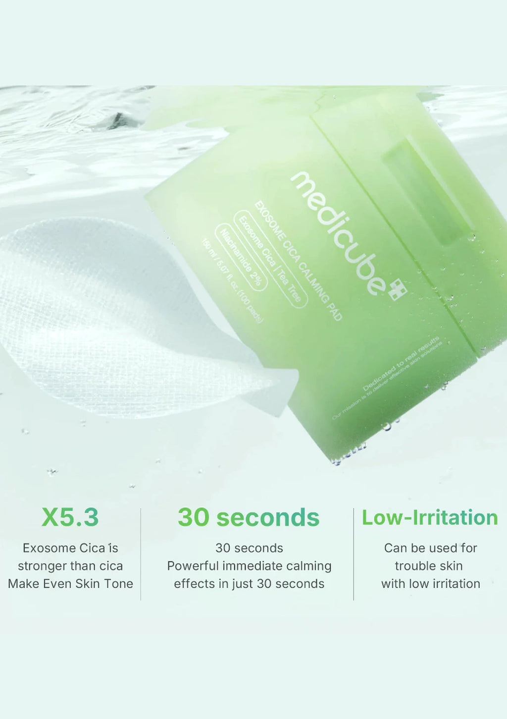 Medicube Exosome Cica Calming Pads packaging with product details on a white background