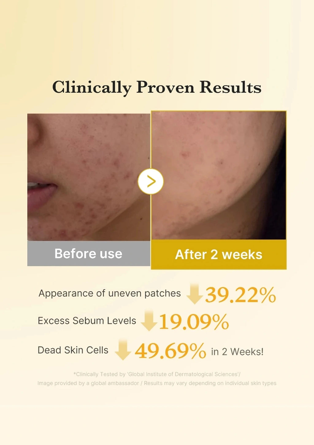 Each pad is generously soaked in essence and can be used not only on the face but also on areas like the back or shoulders that experience uneven texture or blemishes. Multiple forms of hyaluronic acid and panthenol help maintain moisture balance, ensuring skin feels smooth, refreshed and supple after use.