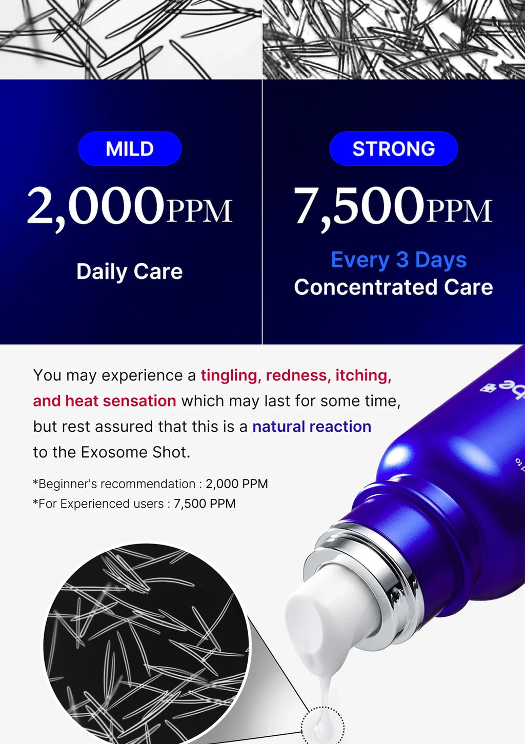 The One Day Exosome Shot Mild 2000 is inspired by microneedling principles and offers daily intensive treatments for home use. It is clinically validated to reduce pore size, refine skin texture, strengthen the skin barrier, and promote radiance. A natural tingling sensation during use indicates its potent, active delivery mechanism.