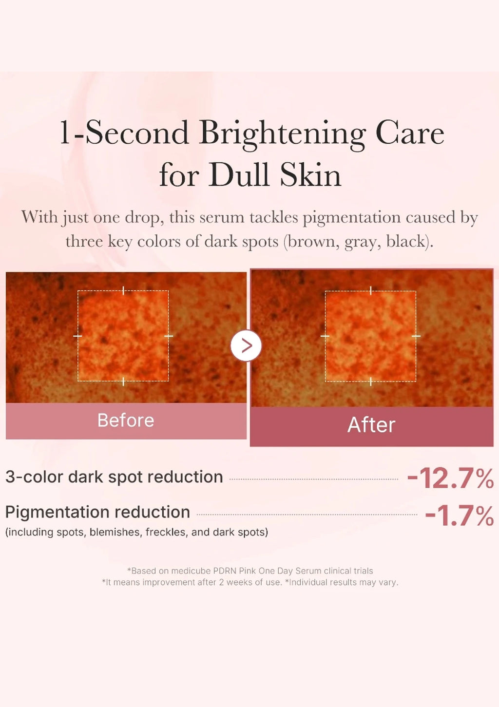Medicube PDRN Pink One Day Serum is a highly concentrated skincare solution formulated with 99% high-purity Salmon PDRN to revitalize and brighten dull, dark skin. Featuring a narrow, thin nozzle for precise application, it absorbs quickly and adheres freshly to the skin. Clinically proven to increase moisture by 58.7%, enhance skin glow by 38.8%, and improve skin density by 0.484, it delivers visible results in just two weeks.
