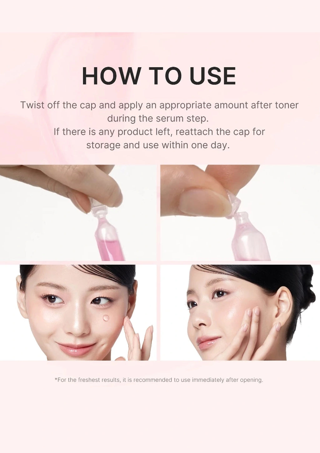 1. Daily Application: After cleansing and toning, twist open the cap, apply a moderate amount to your face, and gently massage for absorption.