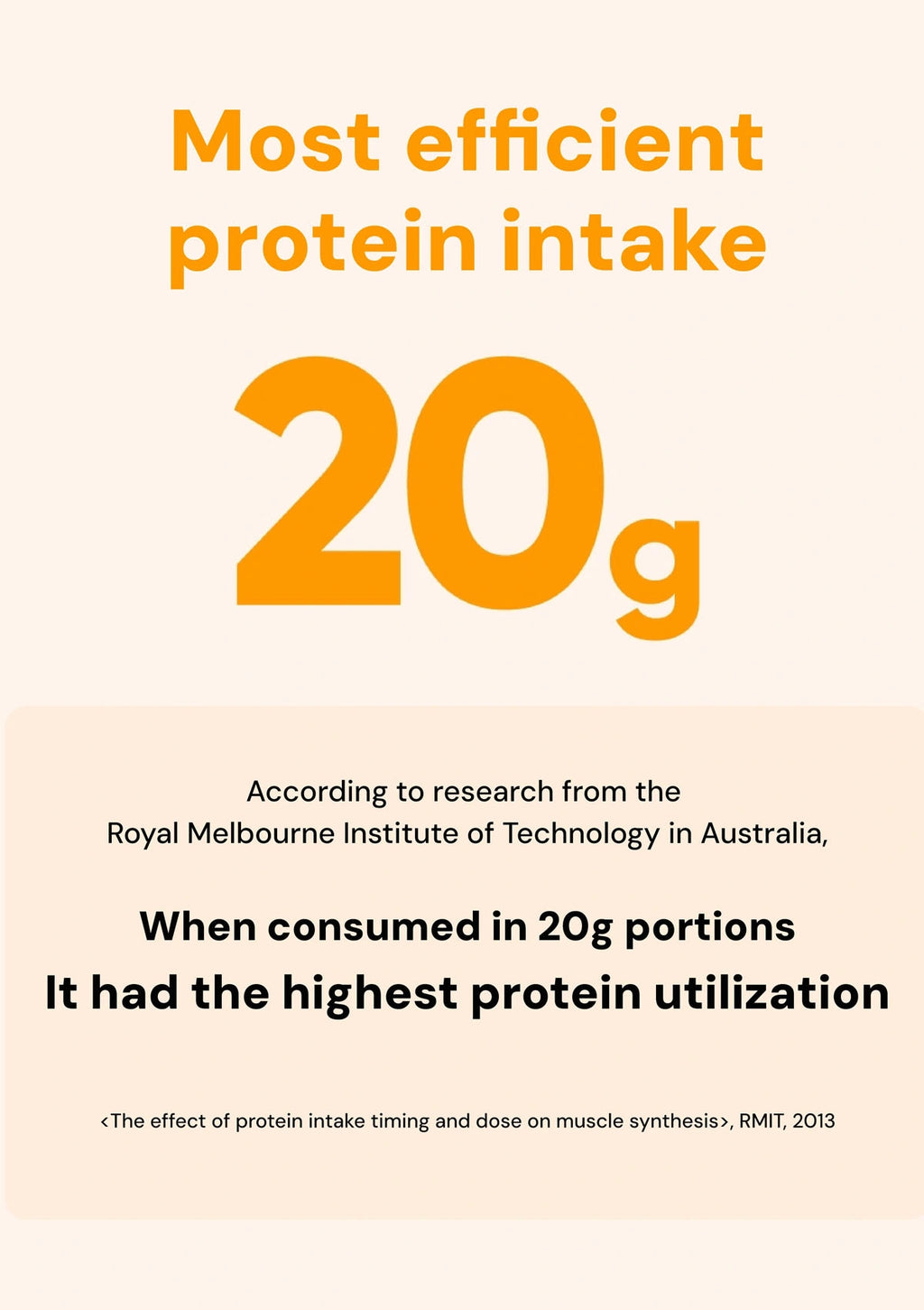 Text about most efficient protein intake of 20g, citing research from the Royal Melbourne Institute of Technology.