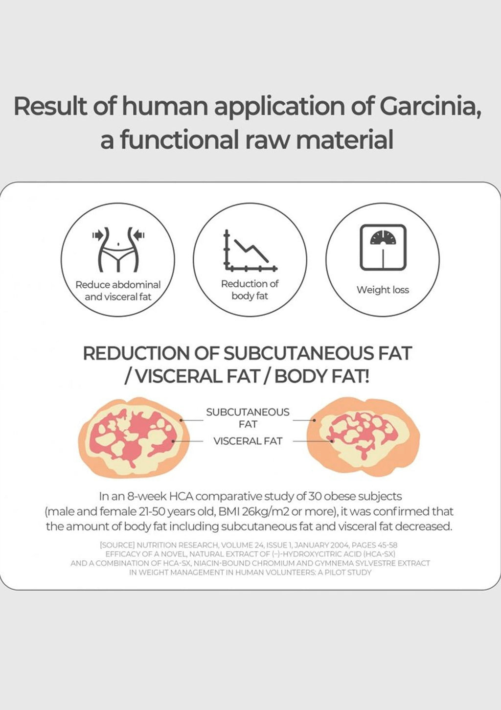 Garcinia Cambogia Extract, Citric acid, Sodium Hydrogen Carbonate, Citrus Concentrate powder, Citrus Scent Powder, Sodium DL-Malate, Enzymatically Modified Stevia Glucosyl, Calamansi Juice Powder, Lactose Powder, Beta-Cyclo-dextrin, Citrus extract powder, Chicory root extract powder, Vitamin C (L_Ascorbic Acid), White kidney bean extract, Lemon chestnut extract powder, Carboxymethylcellulose natrium, sucralose, Vitamin B6 Hydrochloride, Vitamin B1, Mononitrate, Vitamin B2