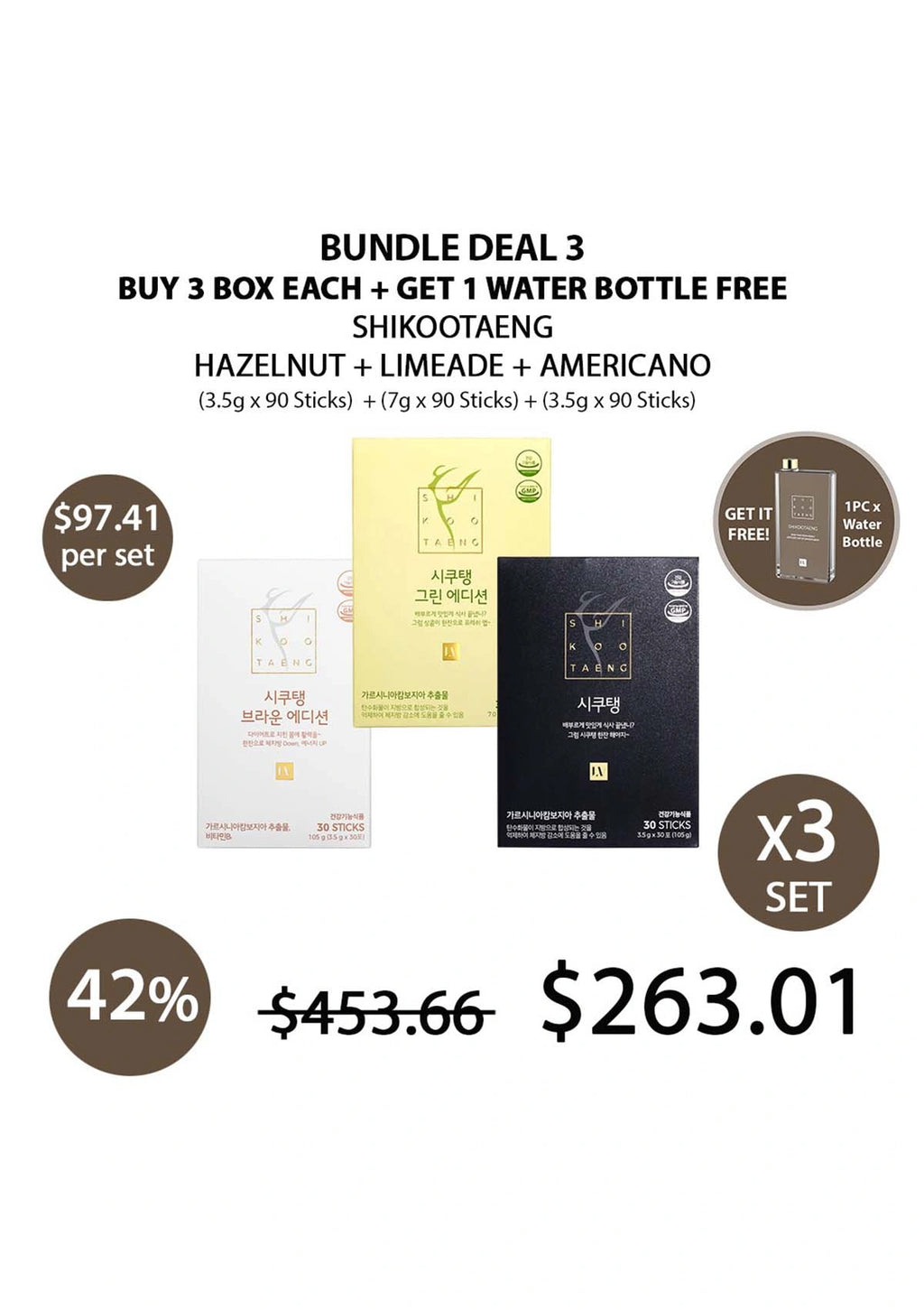 [SHIKOOTAENG] Diet Coffee Americano | Hazelnut | Green Edition Limeade (30 Sticks)