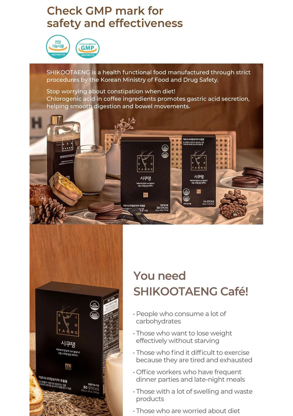 The Shikootaeng Diet Coffee – Americano is a tasty coffee treat for those looking to lose weight in a healthy and nourishing manner. It delays carbohydrate digestion which aids in weight loss. It also reduces the size of visceral fat cells while promoting fat consumption! 1 stick (3.5g) only adds 12.5 kcal!