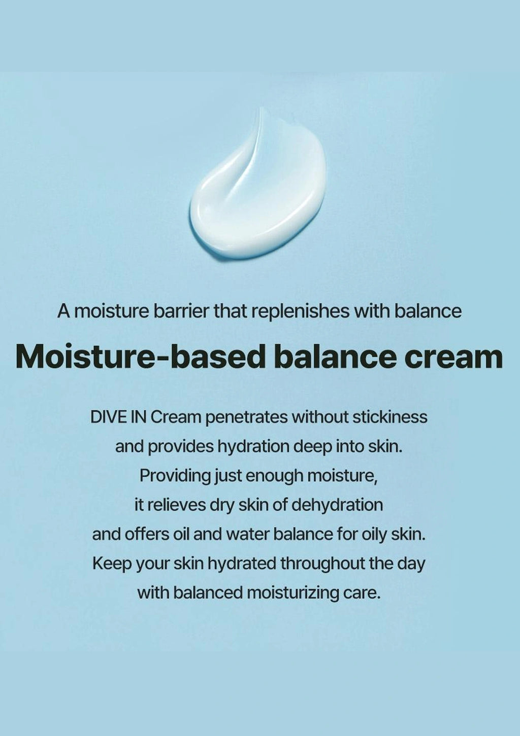 Moisture-based balance cream with text on a light blue background